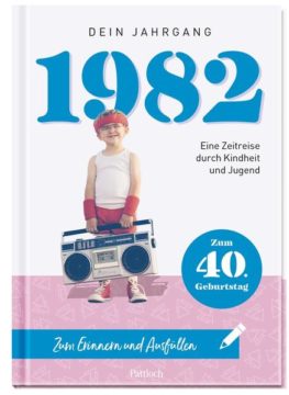Dank zusätzlicher Elemente zum Eintragen wird aus dem Jahrgangsbuch für alle 1982 Geborenen ruckzuck ein individuelles Geschenk zum 40. Geburtstag. Mit zahlreichen authentischen Fotos und Unterhaltsamem und Informativem aus Politik und Kultur, Gesellschaft, Sport, Mode und natürlich der Musik der 80er Jahre lässt 1982 – Dein Jahrgang das coolste Jahrzehnt lebendig werden. Das Jahrgangsbuch ist ein tolles Geschenk zum 40. Geburtstag, das mit Quizfragen rund um den Jahrgang 1982 für zusätzlichen Gesprächsstoff sorgt.