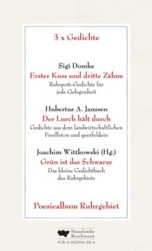 Die Bücher von Sigi Domke, Erster Kuss und dritte Zähne. Gedichte für jede Gelegenheit (ISBN 978-3-942094-51-1), Hubertus A, Janssen, Der Lurch hält durch. Gedichte aus dem Landwirtschaftlichen Feuilleton und Querfeldein (ISBN 978-3-942094-49-8) und Joachim Wittkowski (Hrsg.), Grün ist das Schwarze. Das kleine Gedichtbuch des Ruhrgebiets (ISBN 978-3-942094-50-4) signiert und limitiert (500 Exemplare) im Schuber; mit einer von den drei Urhebern unterschriebenen Zertifizierung.