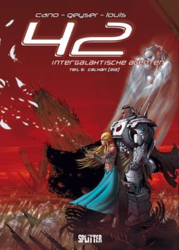 Eine Welt, in der sich zwei Zivilisationen seit Jahrhunderten in einem schonungslosen Religionskrieg befinden. Einem Krieg, der unweigerlich zur Zerstörung beider Völker führen wird. Mitten in dieser blutigen Auseinandersetzung befindet sich Nitaar, eine der letzten der legendären intergalaktischen Agenten. Heute besteht diese Spezialeinheit nur noch aus 42 tapferen und außergewöhnlichen Mitgliedern. Zusammen mit Alh-Aar Senzaî muss Nitaar ein Friedensabkommen zwischen der Gemeinschaft der freien Staaten und Drakhastan arrangieren, eine mehr als heikle Mission. Doch welche Rolle spielt Nitaar selbst in diesen Kriegswirren? Mit 42 präsentiert Splitter ein Fantasy-Sci-Fi-Spektakel der Extraklasse, angesiedelt in einem fantastischen und düsteren Universum voller Raumschiffe, Drachen und fremder Wesen.