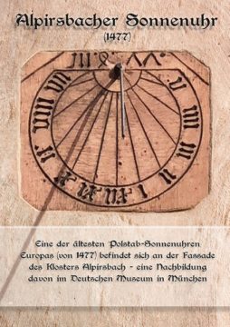 Eine der ältesten Polstab-Sonnenuhren Europas (von 1477) bef indet sich an der Fassade des Klosters Alpirsbach – eine Nachbildung davon im Deutschen Museum in München