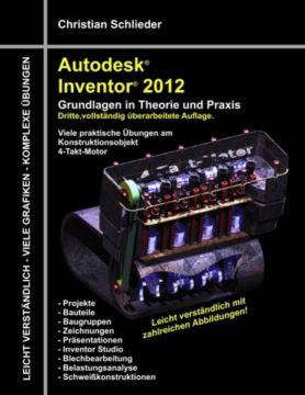 Dieses Übungsbuch richtet sich an alle interessierten Personen diverser Fachgebiete. Es ist logisch aufgebaut und versucht Ihnen anhand der sukzessiven Konstruktion eines 4-Takt-Motors das Programm Autodesk® Inventor® 2012 näher zu bringen. In kleinen, einfach nachvollziehbaren Arbeitsschritten werden Sie verschiedene Vorgehensweisen und Befehle kennen lernen und schrittweise nacharbeiten können.