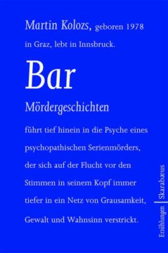 Martin Kolozs setzt seine Serie über den psychopathischen Serienmörder Jakob Schwind fort: Auch im zweiten Band seiner Kriminalerzählungen zeigt der Tiroler Autor keine Scheu vor den tiefsten Abgründen des Menschseins. Erzählend setzt er sich auf die Fährte Schwinds: Getrieben von der Wahnvorstellung, dass nur das Blut anderer Menschen ihn vor dem Tod retten kann, zieht er eine Spur der sinnlosen Gewalt. In knappen Sätzen, mit verblüffender Sachlichkeit und einer guten Portion Ironie führt Martin Kolozs die Geschichte von Jakob Schwind, die er in seinem ersten Buch Mon amie eröffnet hat, zu einem vorläufigen Ende. Kunstvoll verbindet er die atemlose Spannung mit der exakten Betrachtung der deformierten Psyche eines entgleisten Menschen zu fesselnden und beunruhigenden Erzählungen.