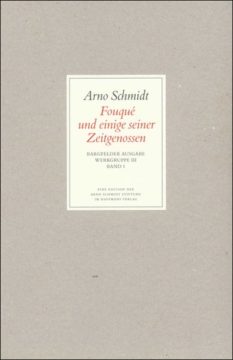 »‹Die Nacht wird kalt›, sagte der alte Rudolf, ‹Von dem Wetterfähnlein kreischt es herunter; die Eichen fangen zu rauschen an – : lege mehr Holz an den Heerd, Alwin›«. Jene Sätze aus Friedrich de la Motte Fouqués (1777-1843) Roman Alwin (1808) müssen schon auf den Schüler Arno Schmidt eine hypnotische Wirkung ausgeübt haben, zitiert er sie doch immer wieder in seinem Werk und bekennt einmal: »Da war ich hin!« Von dem Tag an, da er den rotleinenen Band in der Schulbibliothek fand, stöberte er in allen Antiquariaten nach den verschollenen Büchern des Romantikers. Aus Bibliotheken, Pfarrhäusern und Familienarchiven trug er seit Ende der dreißiger Jahre alles nur erdenkliche Material über Fouqué zusammen, selbst wenn er gemeinsam mit seiner Frau auf dem Tandem oder mit verbilligten Flüchtlingsfahrkarten per Bahn einer vergilbten Urkunde wegen herumreisen mußte. Was Schmidt seinen literarischen Helden als Werkstück immer wieder auf die Schreibtische legte: die Arbeit an einer monumentalen Lebensgeschichte des dichtenden Barons, verfertigte er am Ende selbst. 1958 erschien auf 590 eng bedruckten Seiten die Biographie Fouqué und einige seiner Zeitgenossen.