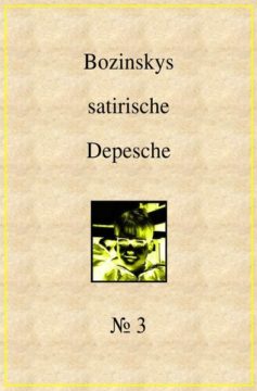 Bozinskys satirische Depesche Nr. 3 hebt das Seelenheil durchs Körperliche auf die Agenda der Betrachtung. Im Zentrum aller Handlungen: Hands on! Wege und Begegnungen. Sie sind vorgezeichnet. Und die Begegnungen sind frei, solange keine Elefanten in der Nähe sind. Denn Elefanten feiern kein Silvester! Glück gehabt. Oder? Und damit gilt: Freie Fahrt.