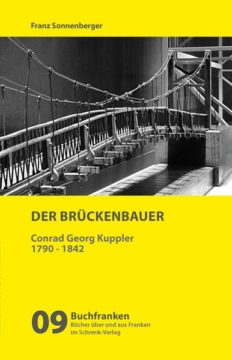 In diesem Kontext fiel Sonnenbergers Blick auf Conrad Georg Kuppler, der als Erbauer des Nürnberger Kettenstegs – der ältesten noch erhaltenen eisernen Hängebrücke in Deutschland (Bild S. 17) – unvergessen ist. In rastloser Tätigkeit suchte der Mann, der selbst aus dem Handwerk kam, seiner Vaterstadt erfolgversprechende neue Produkte und Fertigungsmethoden zugänglich zu machen. Er war in diesem Sinn ein begnadeter „Brückenbauer“ in eine neue Zeit. Als Professor an der Polytechnischen Schule führte er neue Lehrmethoden nach französischem Vorbild ein. Als Planer stellte er die Weichen für die erste deutsche Eisenbahn zwischen Nürnberg und Fürth. Kaum bekannt ist er als früher Pionier der Gasbeleuchtung, noch viel weniger als „popularisierender“ Autor, Übersetzer und Herausgeber, und am Ende als finanziell völlig ruinierter Erfinder.