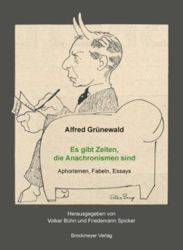Der Wiener Autor Alfred Grünewald (1884-1942) ist mit seinem umfangreichen Werk – mehr als zwanzig Bände – heute weitgehend vergessen, auch wenn der 1996 veröffentlichte Band „Ergebnisse“, der ihn als Aphoristiker in der Nähe von Karl Kraus zeigte, weithin Beachtung fand. Der vorliegende Band enthält eine schmale Auswahl aus seinen zwischen 1917 und 1941 in Zeitschriften und Zeitungen veröffentlichten Aphorismen, des Weiteren eine Auswahl aus den Essays und Feuilletons, schließlich bisher ungedruckte Fabeln. Er wird eingeleitet durch einen biographischen Essay von Volker Bühn, der sich seit Jahren um das Werk Grünewalds bemüht und gleichzeitig eine Monographie zu dem Autor vorlegt, und abgeschlossen durch ein Nachwort des Aphorismusforschers Friedemann Spicker, der den Autor in die Literatur seiner Zeit einordnet. Im Anhang werden die genauen Textnachweise verzeichnet (Erstdrucke, Archive). Grafiken aus der Zeit Grünewalds und Fotos des Autors sind beigegeben.