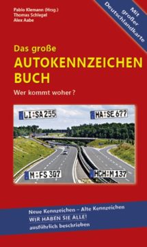 „Das große Autokennzeichenbuch“ bietet für wenig Geld viel Wissen und jede Menge Spaß und Unterhaltung während der Autofahrt. Man fragt: „Wo kommt der denn her?“ und kann die Antwort gleich nachschlagen. In alphabetischer Reihenfolge der Kennzeichen sind Umgebung und markanten Besonderheiten der Kreise und Städte beschrieben. Dazu gibt’s Sonderkennzeichen von Regierungen, amtlichen Stellen, Kennzeichenschilder – und für den schnellen Überblick: die ins Buch integrierte aufklappbare Deutschlandkarte.