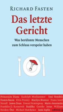 Was aß James Dean, bevor ihn sein Sportwagen aus der Kurve trug? Welches Lieblingsgericht ließ sich Marilyn Monroe zubereiten, ehe sie sich das Leben nahm? Welche Henkersmahlzeit wünschte sich Peter Kürten – der ‚Vampir von Düsseldorf‘? Richard Fasten stellt Prominente und ihre letzten Mahlzeiten vor. Das letzte Gericht vor dem (freiwilligen oder unfreiwilligen) Tod verrät viel darüber, wie der oder diejenige zu leben verstand oder welchen Stellenwert Essen und andere Genüsse zu Lebzeiten hatten.