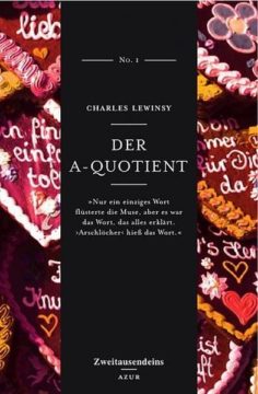 Charles Lewinsky: Der A-Quotient. Hier ist der zeitlos-moderne Klassiker über ein harmonisches menschliches Miteinander. Er heißt „Der A-Quotient. Theorie und Praxis des Lebens mit Arschlöchern“. Laut Eulenspiegel ist es „das erste und einzige umfassende Standardwerk zum Verständnis und zur Diagnostizierung der menschlichen Volksseuche Nummer 1“. Es ist auch ein schönes Geschenk. An Freunde, die unter Arschlöchern leiden. Und an Arschlöcher. Und wie die nun mal sind, werden die nicht begreifen, was Sie sagen wollen, und sie werden sich für „dieses lustige Buch“ bedanken. Arschlöcher eben.