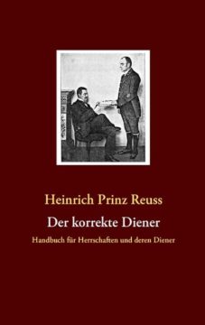 „Der korrekte Diener“ – von Prinz Reuß zur Jahrhundertwende geschrieben – ist ein Werk, welches uns tiefen Einblick in einen hochherrschaftlichen Haushalt zur Zeit des Deutschen Kaiserreichs gibt. Dienstpersonal war zur damaligen Zeit ein Statussymbol – je mehr, desto glanzvoller der Haushalt. Prinz Reuß schildert sehr detailgetreu: vom gepflegten Erscheinungsbild eines Dieners bis zur korrekten Pflege des Familiensilbers.