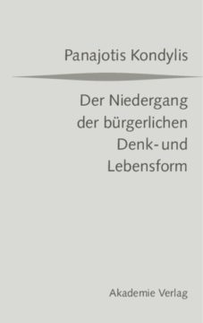 In seinem 1991 erstmals erschienenen Werk weist der Philosophie- und Sozialhistoriker Panajotis Kondylis nach, dass die sozialen und geistigen Wandlungen seit dem letzten Viertel des 19. Jahrhunderts bis heute eine strukturelle Einheit bilden. Die sich im Laufe von rund 150 Jahren vollziehenden gesellschaftlichen Prozesse resultieren in einem Paradigmenwechsel: Statt der bürgerlich-liberalen Denk- und Lebensform bestimmt die egalitär-massendemokratische Konsumhaltung mit ihren Wohlstandsversprechungen die Welt des 20./21. Jahrhunderts. Die Überwindung der Knappheit der Güter führt zu einer historisch einmaligen Situation, zum Massenkonsum, der das postmoderne System in Gang hält. Die zentrale These des Autors lautet: Der ökonomische Erfolg der bürgerlichen Wertvorstellungen von Freiheit und Gleichheit ist zugleich die Ursache ihres Niedergangs. Im verbreiteten Hedonismus gibt es keine ästhetischen und ethischen Vorbehalte, die Analyse der politischen Wirklichkeit wird durch universale Kommunikation ersetzt, die von der Hoffnung auf Weltfrieden angetrieben wird. Im Zeitalter der pluralistischen Massendemokratie öffnen sich die Perspektiven auf die globale Gesellschaft, in der jedoch nicht der Handel den Krieg ablöst, sondern in dem die Verteilungskämpfe zunehmen. Das Buch erhebt nicht nur einen historischen und geistesgeschichtlichen, sondern auch einen methodologischen Anspruch, indem es Zusammenhänge zwischen sozialer, kultureller und raumzeitlicher Wahrnehmung erhellen will.