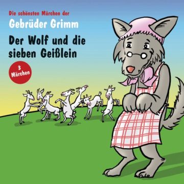 Der Wolf und die sieben GeißleinEine Ziege lässt ihre sieben Kinder allein. Bevor sie die Sieben verlässt warnt sie ihre Kinder davor Fremde einzulassen. Kurze Zeit später klopft der böse Wolf an der Tür und bittet um Einlass. Die Geißlein lassen sich allerdings nicht von seiner Verkleidung täuschen und verwehren ihm den Eintritt. Da frisst der Wolf Kreide um die Stimme der Mutter nachahmen zu können. Als er abermals am Haus anklopft, fallen die Kinder auf den Trick herein und öffnen die Tür. Sechs Kinder frisst der Wolf, das siebte aber versteckt sich in der Standuhr. Als die Mutter heimkommt findet sie nur das kleinste Geißlein vor, welches ihr von dem Unglück berichtet. Es gelingt der Mutter dem schlafenden Wolf den Bauch aufzuschneiden und ihre Kinder zu befreien. Den Bauch des bösen Wolfes stopften sie mit Steinen. Als dieser erwacht und etwas am Brunnen trinken will fällt er hinein und ertrinkt.
