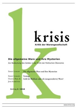 In seinem Aufsatz »Die allgemeine Ware und ihre Mysterien. Zur Bedeutung des Geldes in der Kritik der Politischen Ökonomie« erläutert und begründet Ernst Lohoff diese Thesen ausführlich. Im anschließenden Trialog »Geld als Medium oder als (ausgesonderte) Ware?« diskutiert er seine geldtheoretischen Überlegungen mit Hanno Pahl und Jens Schröter. In der Absicht, die Brücke zwischen einer Medientheorie des Geldes und dem Marx’schen Geldkonzept zu schlagen, erörtern die Diskutanten die Prämissen dieser Ansätze und versuchen deren Verhältnis zu klären.
