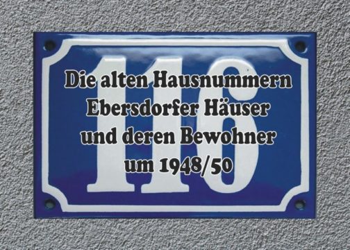 Ebersdorf – jetzt ein Teil der Stadt Saalburg-Ebersdorf – bestand bis 1920 aus zwei eigenständigen Gemeinden: Ebersdorf-Ortsgemeinde (das „untere Dorf“) und Ebersdorf-Brüdergemeine (die „Colonie“). Damit verbunden war die Nummerierung der Häuser in den beiden Orten – jeweils mit 1 beginnend. Dieses doppelte Hausnummern-System wurde noch bis in die 1950er Jahre beibehalten, obwohl schon 1920 beide Orte zu einer Gemeinde zusammengeschlossen wurden. Das führte natürlich zu einigen Verwirrungen.