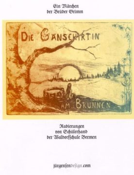 Wir haben das bekannte Märchen der Brüder Grimm in einer gebrochenen Schrift gesetzt und mit Radierungen von Schülern der Oberstufe der Freien Waldorfschule Bremen aus den Jahren 1977 folgende kombiniert.