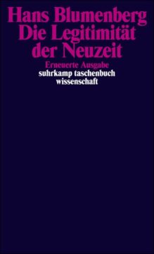 Unter der übergreifenden Fragestellung nach der »Legitimität« analysieren die einzelnen Teile dieses Buches in sich geschlossene Themenkomplexe zur Konstitution der Neuzeit anhand einer Kritik des Grundbegriffs der »Säkularisierung«, mit dem sich das Selbstverständnis der Moderne sowohl freisetzen als auch seiner rückwärtigen Bindungen versichern wollte: es wird nach den Bedingungen für die Herauslösung einer Epoche aus ihren Vorgegebenheiten gefragt. Das Ganze des Werks sucht die sich formierende Neuzeit aus den Antrieben zu erfassen, die aus dem Zusammenbruch des Mittelalters herkamen und zu einem seinen Erwartungen strikt entgegengesetzten Konzept führten. Das obligate Thema des Gesamtwerks ist das Verhältnis von Vernunft und Geschichte.