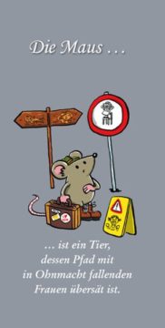 Die Maus … ist ein Tier, dessen Pfad mit in Ohnmacht fallenden Frauen übersät ist.von Klaus-Friedrich Otto Lustige Definitionen und Wortspiele 56. Folge Veröffentlicht am Dienstag 8. Dezember 2015 von Knapp, FritzISBN: 978383140866532 SeitenGenre: Belletristik, Cartoon, Comic, Humor, Satire Teile dieses Buch auf: twitter facebook