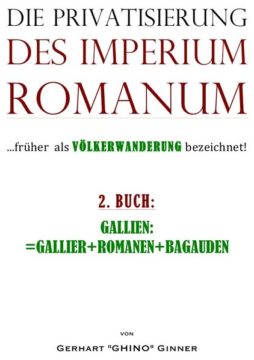 Hier im zweiten Buch beschäftigen wir uns mit dem menschlichen „Biotop“ Galliens: mit der gallorömische Kultur, mit den galloromanischen Sprachen, den Galloromanen und dem gallorömischen Senatsadel sowie einem neuen sozialen Phänomen, das im 3. Jhdt. ins Blickfeld gerät: die Bagauden, gallorömische „Sozialbanditen“ so zu sagen… Am Ende des Buches stellen wir hier das römische Strassensystem vor, das vom Heer gebaut wurde, und anfangs vor allem dazu diente, Truppen schnell verlagern zu können, aber auch erstklassige Voraussetzungen für den Handel schuf – das aber auch den Gegnern für schnelle Beutezüge zum Vorteil gereichen sollte… Gallien: Gallorömische Kultur, Galloromanische Sprachen,Galloromanen, Gallorömischer Senatsadel, Bagauden: Aelianus, Amandus, Tibatto, Basilius, Adovacrius, Römische Technik schafft eine Infrastruktur die den Verkehr maßgeblich beschleunigt, hier Am Beispiel eines kleinen gut erforschten Raumes: Römerstraßen in der Bresse & die Bresse, die römischen Hauptstrassen in Gallien: Via Agrippa, Via Aquitania, Via Domitia, Via Iulia Augusta…