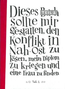 Zumindest ein Punkt von Sylvains Plan zum Glücklichsein hat sich erfüllt: Die Diplomarbeit ist bestanden. Bleiben nur noch der Nah-Ost-Konflikt und das Finden einer Frau. Aber eins nach dem Anderen. Um den Nah-Ost-Konflikt zu lösen – und natürlich nicht zum Angeben – hat Sylvain das phönizische Alphabet gelernt und nebenbei den Kern der Probleme vom menschlichen Zusammensein ermittelt. Zur Erklärung greift er auf Pilzlexika und Crêpe-Rezepte zurück. Ja, man muss weit ausholen, um die Welt zu verbessern. Sylvain untermalt seinen Standpunkt mit liebevollen und witzigen Illustrationen von bestechender Logik. Egal, ob man ihm zustimmt oder nicht: Dieses Buch lohnt sich schon wegen seiner Ehrlichkeit. Bekannter Humor mit neuen Ideen führt die Überlegungen aus dem ersten Teil fort und bringt einen erneut zum anhaltenden Schmunzeln.