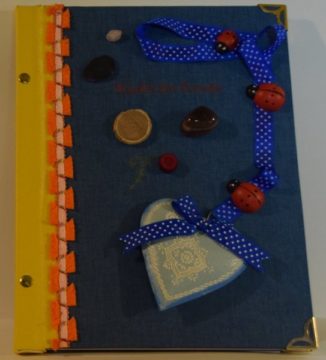 Erzählungen der Autorin Nicoleta Craita Ten’o als Künstlerbuch. Im Großformat in limitierter Kleinstauflage gedruckt. Bindung in Pappelholzumschläge mit Buchschrauben. Bezug in blaues Buchleinen, Rücken aus gelbem Leder geformt, Messingecken zum Schutz. Eingebunden ein Originalaquarell der Künstlerin Heike Laufenburg. Schmuck des Vorderumschlags aus Holzelementen, Halbedelsteinen & Achat sowie einem Herzornament.