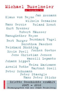 Die beliebte Veranstaltungsreihe Erlebte Geschichte erzählt wurde im Sommer 2010 nach 16 Jahren eingestellt. In drei Publikationen konnte man bisher schon die Gespräche bis zum Jahr 2004 nachverfolgen. Nun wird der abschließende 4. Band vorgelegt; er umfasst die Zeit zwischen 2005 und 2010. Diesmal werden 25 prominente Zeitgenossen mit Heidelberg-Bezug von Michael Buselmeier befragt, darunter der Archäologe Jan Assmann, der Politologe Klaus von Beyme, die Schriftsteller Wilhelm Genazino, der Projektentwickler Roland Ernst, der ehemalige Direktor des Kunstvereins Hans Gercke, der Photograph Robert Häusser, der Regisseur Hansgünther Heyme, die Stadträtin Dorothea Paschen und der einstige Ministerpräsident von Rheinland-Pfalz und Thüringen Bernhard Vogel. Außerdem Bert Burger, Reinhard Düchting, Jochen Goetze, Jens Christian Jensen, Wassili Lepanto, Johann Lippet, Heinz Markmann, Ewin Poell, Arnold Rothe, Peter Schumann, Hartmut Soell, Peter Staengle und Hans Peter Stichs.