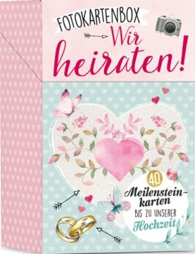 Damit alle Stationen bis zu eurem großen Tag für immer und ewig in eurer Erinnerung bleiben, gibt es diese wunderschönen Fotokarten. Sie begleiten euch von der Verlobung bis zur Hochzeit: Brautkleid aussuchen, Hochzeitstorte probieren, Junggesellinnenabschied feiern, aufgeregt sein – eben alles, was es zu planen, zu lachen und neu zu erleben gibt.