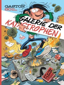 Zum 60. Geburtstag von Gaston haben rund 60 Zeichner Hommagen an den berühmten Redaktionsboten gefertigt. Darunter sind Yoann/Vehlmann, Olivier Schwartz, Frank Pé, Blutch, Lewis Trondheim und viele mehr.