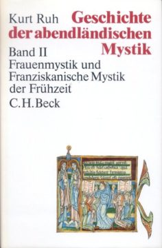 Der zweite Band von Kurt Ruhs „Geschichte der abendländischen Mystik“ enthält die Darstellung der Frauenmystik des 12. und 13. Jahrhunderts und der fraziskanischen Mystik im ersten Jahrhundert des Minoritenordens. In diesen Bereichen wird die Mystik aufgrund gewandelter sozialer Strukturen und neuer Formen der Frömmigkeit überwiegend volkssprachig. Die personale Christusliebe und Christusnachfolge, die sich in der monastischen Spiritualität des 12. Jahrhunderts vollzogen hatte, erfaßt nun breite Schichten der Laienwelt im Aufbruch zu einem „evangelischen“ Leben in Armut, Demut und in der Sicherheit der Gottesliebe. Die Frauenmsytik wie die franziskanische Mystik beruhen auf dieser neu erfahrenen christlichen Lebensform.