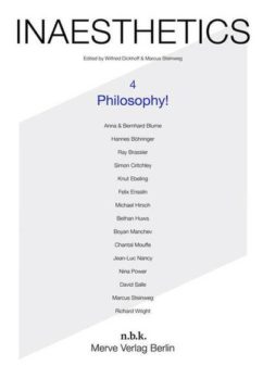 Textbeiträge von Hannes Böhringer, Ray Brassier, Simon Critchley, Felix Ensslin, Jean-François Lyotard, Boyan Manchev, Chantal Mouffe, Jean-Luc Nancy, Nina Power u.a.