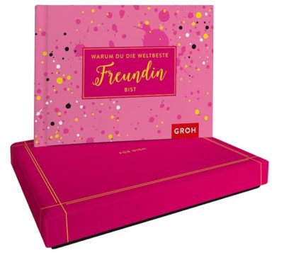 Ihre beste Freundin ist die tollste auf der ganzen Welt, weil sie immer für Sie da ist und Sie in jeder Situation unterstützt? Es gibt niemanden auf der Welt, der Sie besser kennt und versteht? Dann machen Sie Ihrer besten Freundin mit dieser Botschaft in der Box eine Freude und sagen ihr, warum genau sie die weltbeste Freundin ist. Sie füllen das Büchlein mit viel Liebe aus und so entsteht ein ganz persönliches Geschenk.