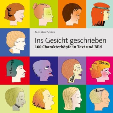 100 menschliche Charaktereigenschaften von A wie Abscheu bis Z wie Zorn, cartoonartig ins Profil eines Kopfes gezeichnet, je ergänzt mit einem Sinnspruch, einer Begriffsklärung und einem Zitat aus der Literatur.
