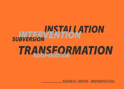 Künstlerische Projekte von Andreas Mayer-Brennenstuhl von 1986-2019: Installationen, Interventionen, subversive Eingriffe und kollaborative Aktionen. Mit Texten von Harry Walter, Dietrich Heißenbüttel, Thomas Oser, Susanne Jakob und Raimar Stange. Anliegen von Andreas Mayer-Brennenstuhl ist die Verortung der künstlerischen Praxis in gesellschaftlichen Kontexten. Dazu bedient er sich der unterschiedlichsten Medien und Formate und unterläuft damit immer wieder erfolgreich Strukturen, die sich ästhetischen Diskursen eigentlich entziehen. Der Geltungsbereich künstlerischer Praktiken wird dabei immer wieder neu ausgelotet, beispielsweise in der subversiven Aktion „UNSER PAVILLON“, bei der im besetzten Stuttgarter Schlossgarten im Kontext der Widerstands-Bewegung gegen das Projekt Stuttgart21 eine architektonische Plattform errichtet wurde, die die Kommunikation über das umstrittene Projekt mit künstlerischen Praktiken zum Anliegen hatte. Oder das Projekt „NEUROPA“, bei dem der Künstler seit ein paar Jahren zu Fuß unterwegs ist auf dem „CAMINO REVOLTA“ um Impulse für eine neues Europa zu kommunizieren. Seine krtitische künstlerische Position wurde auch sichtbar in einem Ausstellungsbeitrag im Rockbund Art Museum in Shanghai, bei dem er dort Impulse zu einer Post-Wachstums-Gesellschaft im Rahmen einer partizipativen Aktion ins Gespräch brachte. Das Projekt „BIBLIOTHEK DER AKADEMIE FÜR TRANSFORMATIONS-KOMPETENZ“ stellt bildhaft und im Format von Seminaren die Frage, inwiefern künstlerische Praktiken einen Beitrag leisten können hinsichtlich der anstehenden gesellschaftlichen Transformation.