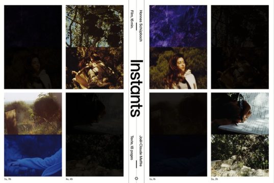 Instants encompasses a new film by the Swiss artist Hannes Schüpbach and a literary text by the French archeologist and writer Joël-Claude Meffre. The artistic project and the publication that was created for it, with an essay by Marco Baschera (“Thinking in Images”), are devoted to a central point of convergence of the arts: the INSTANT. In photography, film, or literature, the instant in its “entrance” or “descent” signifies a performative opening in the sequence of time that radically breaks through any concept of linearity.