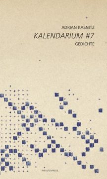 Juli, Hitze und überlaufende Sprache aus Schleifen und Wendungen. Das alles versammelt das Kalendarium #7 von Adrian Kasnitz, der siebte Teilband des Kalendarium-Projekts. Schwimmen, Melone essen, lieben, den Tag auskosten, als gäbe es kein Morgen, heißt auch zu wissen von der Brüchigkeit der Welt, dem verlorenen Paradies, von den Stellen, die schon zerstört sind, den sterbenden Korallenriffen, den eingepferchten Tieren, dem stinkenden Fluss. Immer begleitet von dem Wunsch, die Stadt zu fluten oder alles in Flammen aufgehen zu lassen. In Dystopie und Endzeitstimmung bei knapp 40° C gleiten die Texte. Und doch bleibt da der Versuch, das Glück zu fangen, „das Unwiederbringliche am Abend bei den Containern“. Die Gedichte sind „kleine versteckte Scherzpistolen / die wir uns in den Mund stecken, tief hinein“. Und wieder zum Vorschein kommt die Welt, die wir gerupft und verschlungen haben.