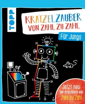 Dieses Kratzelbuch bringt Farbe ins Dunkel, denn mithilfe des beiliegenden Holzstiftes kratzt du ganz einfach zehn verborgene Motive aus dem schwarzen Papier. Doch dabei ist Köpfchen gefragt! Verbinde die Zahlen in der richtigen Reihenfolge und gefährliche Luftschiffe, Unterwasser-Piraten und lustige Roboter kommen zum Vorschein. Wenn du möchtest, kannst du dein Kratzbild anschließend nach Lust und Laune mit weiteren Kritzeleien verzieren und deine ganz eigenen Kratzideen aufs Papier bringen. Ob einfach oder anspruchsvoll: Hier wird jedes Kratz-Rätsel zum Kunstwerk.