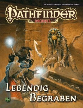 Lebendig Begraben ist ein Reiseabenteuer für Charaktere der 6. Stufe für das Pathfinder-Rollenspiel. In diesem Band findet ihr eine Beschreibung der Stadt Sothis und des uralten Grabes in ihrer Nähe sowie über die Abenteurerkonkurrenz, die den Schatz ebenfalls als erste finden will.