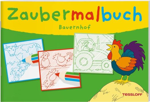 Hokuspokus und auf den leeren Seiten des Zaubermalbuches erscheinen trubelige Motive rund um den Alltag auf einem Bauernhof. Bild für Bild nähern sich kleine Zauberer Schwein, Huhn und Kuh, Traktor, Mähdrescher und Erntemaschine, die sie danach ganz nach Lust und Laune ausmalen können. Ein magischer Spielspaß und zugleich originelles kleines Geschenk für Kinder ab 3 Jahren. Zaubern und malen, spielen und lernen ….