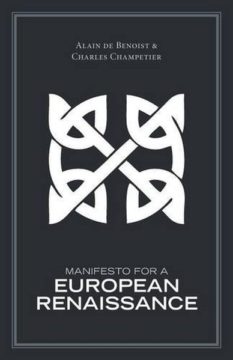 This manifesto remains the only attempt to date by GRECE, the primary New Right organization in France, to summarize its principles and key concepts. It was written in 1999 by Alain de Benoist, GRECE’s founder, and Charles Champetier on the occasion of GRECE’s thirtieth anniversary. It offers a strong argument in favor of the right to difference among cultures and civilizations, and the right of peoples to defend themselves from cultural homogenization. It also offers a vision of a regenerated Europe which will find its strength in a return to its authentic values and traditions, in opposition to the new imperialism of multiculturalism and the global marketplace.