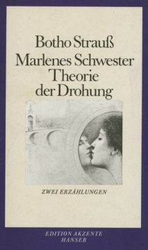 In den beiden Erzählungen Marlenes Schwester und Theorie der Drohung tauchen Motive, stilistische Figuren und Bilder auf, die die erzählerischen Arbeiten von Botho Strauß berühmt gemacht haben: Verwandlung, psychische Reizung, ein hochsensibler Sinn für die Verluste der Gegenwart, die Beschreibung der Nahtstellen von Gefühl und Begriff.