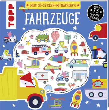 Das ideale Mitmachbuch für zu Hause und unterwegs. Hochwertige 3D-Sticker, Malen nach Zahlen, Labyrinthe, Punkt-zu Punkt-Bilder rund um das Lieblingsthema Fahrzeuge unterhalten Kinder ab ca. 4 Jahren auf kreative und liebevolle Weise. Ein besonders schönes Extra sind die Sternchen-Belohungssticker, die Kinder nach jeder erledigten Aufgabe in ihr Büchlein kleben können.