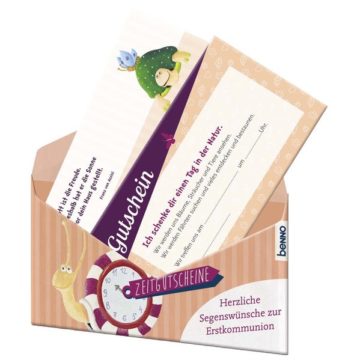 Mit diesen Gutscheinen verschenken Sie etwas wirklich Wertvolles: Zeit. Zeit für schöne Erlebnisse, die lange in Erinnerung bleiben. Speziell für Erstkommunionkinder gibt es verschiedene Anregungen für gemeinsame Unternehmungen, z. B. zusammen Pilgern, ins Theater oder Konzert gehen, Gottes Schöpfung erkunden oder das Erstkommunionjubiläum feiern. Zwei der zehn Gutscheine lassen auch Platz für eigene Ideen, wie Sie Zeit miteinander verbringen möchten. Mit kleinen Gebeten, inspirierenden Zitaten und farbenfrohen Illustrationen sind die Zeitgutscheine liebevoll gestaltet. (10 Zeitgutscheine, 14,7 × 8 cm, beidseitig farbig gestaltet, im Umschlag, 15,2 × 8,5 cm, geeignet für Kinder ab 9 Jahre)