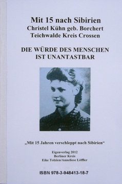 „Mit 15 Jahren verschleppt nach Sibirien“. Christel Kühn, geb. Borchert wurde als junges Mädchen, im Alter von 15 Jahren 1945 von den Russen festgenommen, vielfach von den Russen vergewaltigt und für fast fünf Jahre nach Sibirien verschleppt. In diesem Buch und auf der DVD&CD – ROM schildert sie authentisch und sehr ergreifend die damaligen Ereignisse, dazu die Geschehnisse und die Folgen dessen, die noch bis zum heutigen Tag anhalten. Dies ist ein wichtiges Zeitdokument und es wurde darauf geachtet, dass Frau Christel Kühn frei das wiedergibt, was damals geschah. Vor allem aber, wie unsere Politik in dem nun vereinten Deutschland heute mit diesen politisch verfolgten Opfern umgeht und keine gesetzliche Möglichkeiten schafft, diesen Personenkreis in die Gruppe der zu Unrecht politisch verfolgten Menschen und Opfer des Stalinismus aufzunehmen und anzuerkennen. Christel Kühn steht stellvertretend für einen Vielzahl der vergessenen Opfer politischer Verfolgung. Was ihr angetan wurde war ein Verbrechen an der Menschlichkeit..