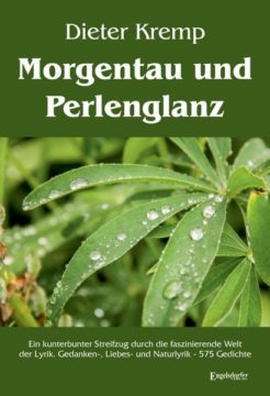 »Morgentau und Perlenglanz« heißt das neue Buch des saarländischen Schriftstellers Dieter Kremp, bereits sein 12. Lyrikband und sein 65. Buch insgesamt. In insgesamt 575 vorwiegend gedanken-, natur- und liebeslyrischen Gedichten macht der Autor einen »kunterbunten Streifzug durch die faszinierende Welt der Lyrik«. Schon in frühester Jugend schrieb Kremp seine ersten gedankenlyrischen Gedichte, die 1958 in einem Lyrikband deutscher Jungautoren veröffentlicht wurden. Gewürzt wird das Buch auch mit Baumgedichten, Gartengedichten, religiöser Lyrik, mit Gedichten von der Offenbarung des Todes und lustigen und humorvollen Tiergedichten. In seiner Naturlyrik lässt der Autor vor allem unsere Frühlingsträume wahr werden. Der Autor spricht in seiner Gedankenlyrik vom Abschied, vom Zahn der Zeit, der an unserem kurzen Erdenleben nagt: »Der Zeiger dreht sich unaufhörlich.« Und er sucht den Weg zu den Sphären des Himmels in eine neue Welt, zurück in das Paradies seiner Kindheit, in den Garten Eden, und findet dort wieder die Vergangenheit des Lebens in der Unendlichkeit. Des Menschen Sein ist für den Autor Dieter Kremp nur ein kurzer Augenblick auf dem Weg in die Unendlichkeit, weil sich das Rad der Zeit rasend dreht und sich der Kreis des Erdenlebens schließt. Philosophisches Denken prägt viele seiner gedankenlyrischen Gedichte. Sein neues Werk »Morgentau und Perlenglanz«, ein kunterbunter Streifzug durch die faszinierende Welt der Lyrik, setzt mit insgesamt 575 Gedichten seinem lyrischen Schaffen die Krone auf. Der Autor hat bereits einen weiteren Lyrikband mit wieder 575 Gedichten in Aussicht gestellt: »Morgenrot und Sternenglanz«, das ähnlich aufgebaut ist wie sein 12. Lyrikband »Morgentau und Perlenglanz«. So wünscht der Autor dem Leser dieser Gedichte Entspannung in unserer hektischen Zeit, einen Tropfen Perlentau der Liebe, ein Wort des Dankes für den anderen und sich wohlfühlen im Garten Eden des Paradieses, wenn auch nur für eine kurze Zeit, denn der Weg in die Unendlichkeit ist nicht weit.