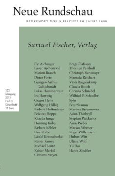 S. Fischer wird 125. Die »Neue Rundschau« feiert diesen Geburtstag mit den S. Fischer-Autoren. Wir haben sie um einen Text gebeten, der eine recherchierte, erlebte oder eine erfundene Geschichte aus der Historie des Verlags erzählt. Erwarten Sie Indiskretionen, die manches zurechtrücken, bisher nie für möglich gehaltene große Momente der Literatur und Erfindungen, die den Verlag in ein ganz neues Licht stellen.