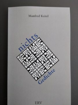 ’nichts‘. Der dritte Band des Mainzer Lyrikers Manfred Keitel im Erwin Rauner Verlag Augsburg. Mit einer Titelillustration von Peter Thiersch. Und einem Nachwort ‚Erratanomicon‘ des Dichters.