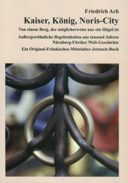 Kaiser, König, Noris-City. Oder: Von einem Berg, der möglicherweise nur ein Hügel ist. Außergewöhnliche Be-gebenheiten aus tausend Jahren Nürnberg-Fürther Welt-Geschichte. Ein Original-Fränkisches-Mittelalter-Jetztzeit-Buch. Sagen, Geschichten, Gedichte und Erzählungen. Humorvoll-Kritisches und Curios-Satirisches. – Um was es in diesem Buch geht: Die Nürnberg-Fürth-Sage vom ‚Kaiser Karl im Brunnen und im Berg‘ wird in drei völlig eigenständigen Geschichten vollkommen neu erzählt. Durch diese ungewöhnliche Erzählweise wird diese alte Sage in drei moderne und wortgewaltige Zeit-Reise-Geschichten verwandelt. – Themenbereiche: Nürnberg und Fürth. – Hier und dort zugleich. Geschichten von alten und von neuen Zeiten. – ‚Kaiser Karl im Brunnen und im Berge‘. Die Original-Geschichte. Überliefert durch Ludwig Bechstein. – Die Brunnen-Kaiser. Eine alte Sage, ergänzt durch ein paar abschweifende Anmerkungen. – Wer singt denn da? Kaiser Karl in Klee-blatt-City. – Nero, Noro, Doris. Der nicht ganz ernst gemeinte Versuch, herauszubekommen, warum Nürnberg Nürnberg heißt. – Bibliografie. – Nützliche Informationen. Oder: Was Leserinnen und Leser noch interessieren könnte. – Buch-Info: Neue und ungewöhnliche Texte zum Lesen, Vorlesen, Vortragen und Zuhören. Ein außer-gewöhnliches Buch für alle Freundinnen und Freunde von Nürnberg, Fürth und Franken. Ein literarischer Le-ckerbissen. – In der Buch-Reihe: • Nürnberger Bibliothek • Franken • Nürnberg • Fürth • Sagen, Geschichten und Erzählungen. – © 1989-2010 by Friedrich Ach, Nürnberg. – © 2011 by Verlag Irmgard Dennerlein, Nürnberg (VIDN). – Buch-Erst-Auflage, Nachdrucke und Neu-Auflagen: 1. bis 7. Auflage 2011 bis 2017. – ISBN 978-3-927784-40-6