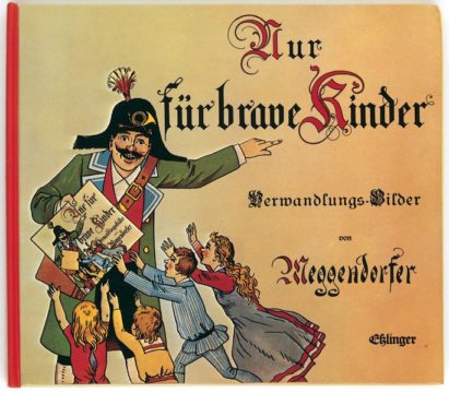 Allerlei Überraschungen – nicht nur für (brave) Kinder – birgt dieses Verwandlungsbilderbuch von Lothar Meggendorfer. Unter den beweglichen Bilderbüchern mit Jalousie-Mechanismus gehört der erstmals 1896 erschienene Titel „Nur für brave Kinder“ zu den schönsten und ausgereiftesten des Papierkünstlers und Humoristen Meggendorfer.