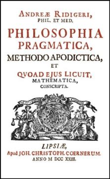 Andreas Rüdiger was one of Christian Thomasius’s most important and independent pupils. In histories of 18th-century philosophy he is usually described as an Eclectic. Apart from Thomasius he owes most to the English philosophers John Locke and Thomas Hobbes and the physicist Henry Moore. The Philosophia synthetica of 1707 was Rüdiger’s first attempt to present his complete philosophy to an audience. The title itself indicates the inspiration – both Thomasian and Eclectic – for his goal of discovering and judging truth. The task of philosophy is to recognise that truth which is not immediately obvious to all, but is still of use. Andreas Rüdiger, for the first time in the context of German academic philosophy, conceives and describes philosophy, and specifically metaphysics, as an “empirical science”. This very first description of his philosophy takes epistemological questions as the starting point for all philosophical understanding, conception and methodology, to a previously unprecedented degree.