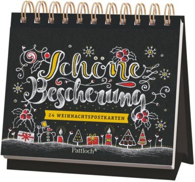 Stellen Sie sich eine leere Tafel vor, die mit sanften Kreidestrichen, fröhlichen Weihnachtsmotiven und flott-festlichen Worten zum Leben erweckt wird. Mit diesem Postkartenaufsteller halten Sie genau das in Ihren Händen. Die dezenten Goldfolienveredelungen auf jeder Karte sorgen zudem dafür, dass der vorweihnachtliche Glanz und der festliche Charakter dieser besonderen Jahreszeit charmant betont werden.
