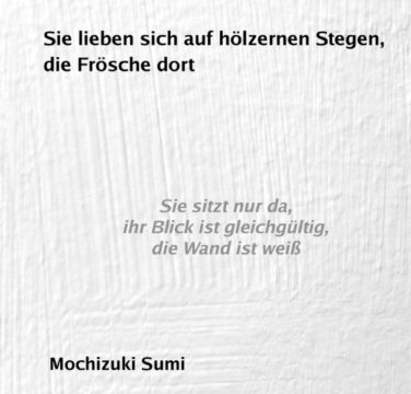 Die Haiku der Dichterin Mochizuki Sumi sind sowohl bezüglich ihrer Form als auch ihrer Inhalte keine typisch traditionellen Haiku. Einige Kritiker sprechen deshalb von Senriuu. Die hier übersetzte Auswahl an Haiku konzentriert sich gerade auf diese von der Norm abweichende Haiku mit inhaltlichen Bezügen zu Themen der Intimität und ihrem Gegenbild, der Distanz. Für die Übersetzung wurde eine feste Form mit 4 – 6 – 4 Silben gewählt.